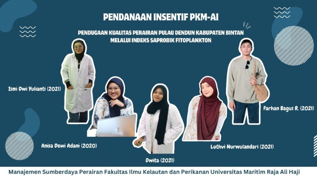 Mereka adalah Dwita (Ketua Tim), Luthvi Nurwulandari, Ismi Dwi Y, Anisa Dewi Adani, dan Farhan Bagus Rivaldy. Dengan bimbingan dosen Tri Apriadi, S.Pi., M.Si., tim ini menulis artikel berjudul: “Pendugaan Kualitas Perairan Pulau Dendun Kabupaten Bintan Melalui Indeks Saprobik Fitoplankton.”