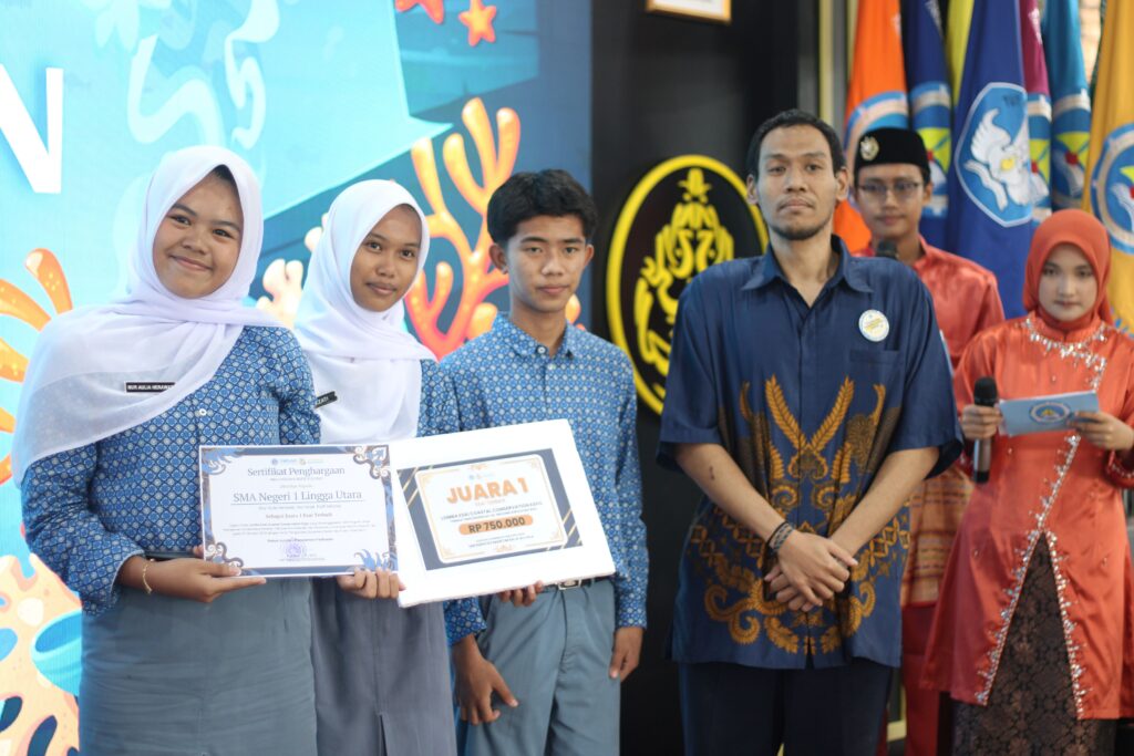 Menjelang sore, tibalah saat yang ditunggu: pengumuman pemenang lomba. Sorak-sorai memenuhi ruangan ketika nama-nama sekolah disebut. SMAN 1 Lingga Utara mendominasi dengan meraih juara umum, sementara sekolah lain dari Batam, Tanjungpinang, hingga Lingga turut membawa pulang penghargaan di berbagai kategori—esai, gagasan, presentasi, poster, hingga karya orisinal.